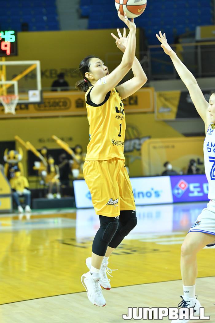 [점프볼=청주/유용우 기자] 11일 청주실내체육관에서 열린 'KB국민은행 Liiv M 2020-2021 여자프로농구' 청주 KB와 용인 삼성생명의 챔피언결정전 3차전, KB 염윤아가 공격을 시도하고 있다.