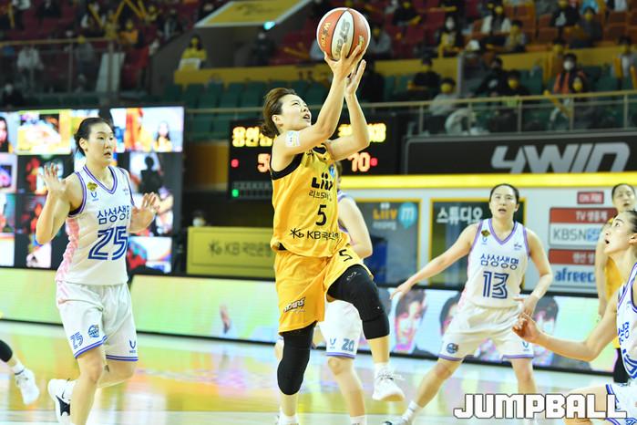 [점프볼=청주/유용우 기자] 11일 청주실내체육관에서 열린 'KB국민은행 Liiv M 2020-2021 여자프로농구' 청주 KB와 용인 삼성생명의 챔피언결정전 3차전, KB 심성영이 빠르게 돌파하며 레이업을 올리고 있다.