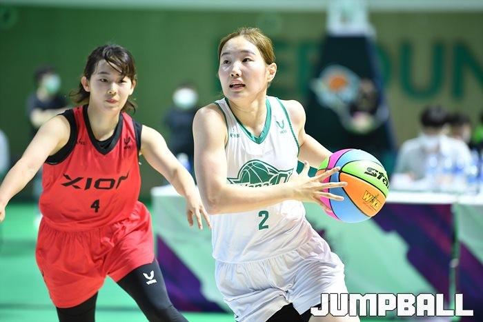 [점프볼=청라/유용우 기자] 20일 인천 서구 하나글로벌캠퍼스에 위치한 하나은행 연습체육관에서 열린 ‘2020 하나원큐 3x3 TRIPLE JAM(트리플잼)’ 1차 대회, 하나원큐 김지영이 돌파를 하고 있다.