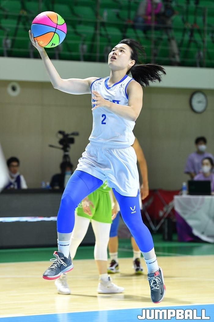[점프볼=청라/유용우 기자] 20일 인천 서구 하나글로벌캠퍼스에 위치한 하나은행 연습체육관에서 열린 ‘2020 하나원큐 3x3 TRIPLE JAM(트리플잼)’ 1차 대회, 우리은행 김진희가 레이업을 올리고 있다.
