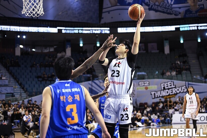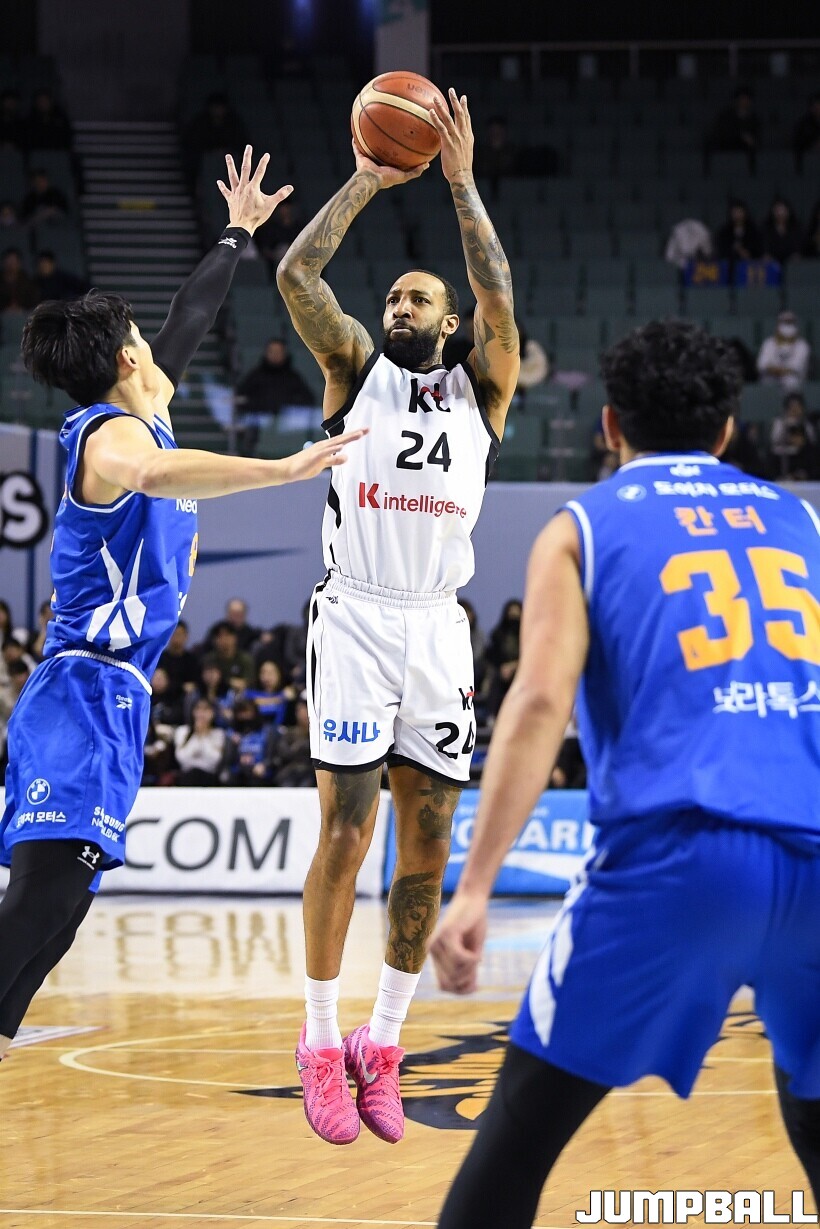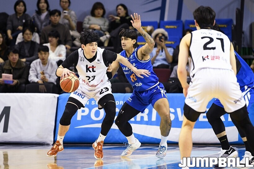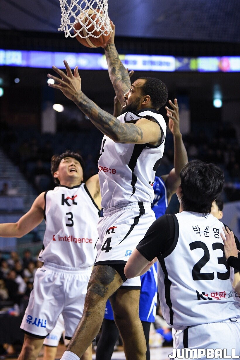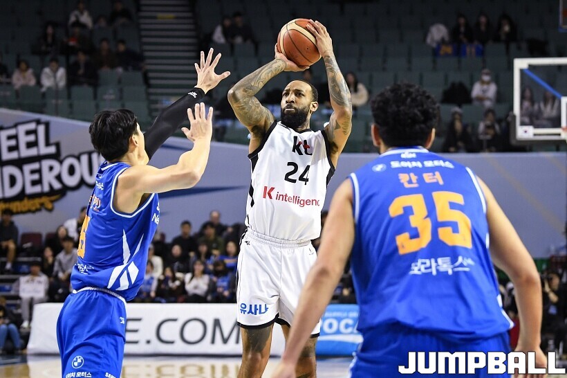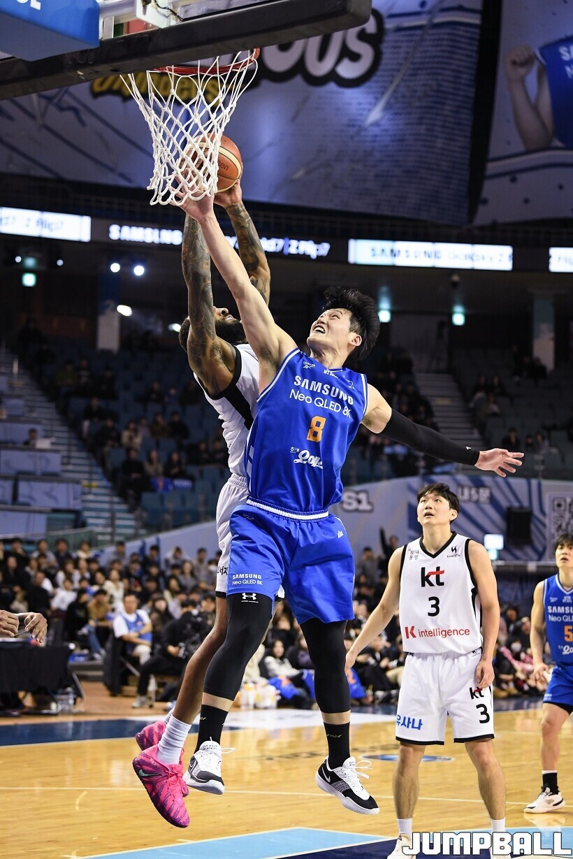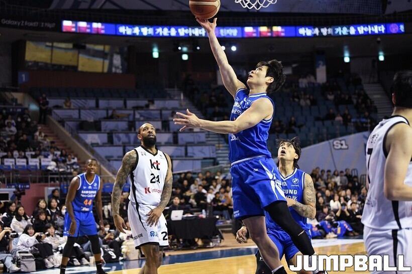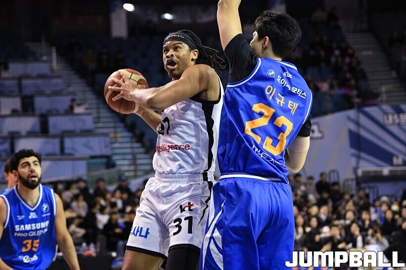 [점프볼=잠실/유용우 기자] 24일 잠실실내체육관에서 열린 2025-2026 LG전자 프로농구 서울 삼성과 수원 KT의 경기,KT가 78-71로 삼성에 원정 승리를 거뒀다. 데릭 윌리엄스는 23점을 올리며 팀 승리를 이끌었다. KT 강성욱은 17점 4리바운드 7어시스트 3스틸을 기록하며 원정 승리에 기여했다.