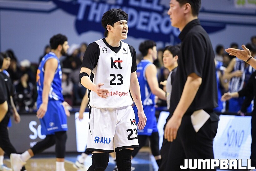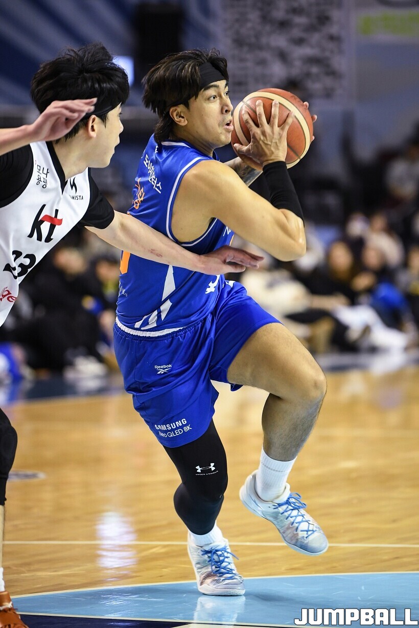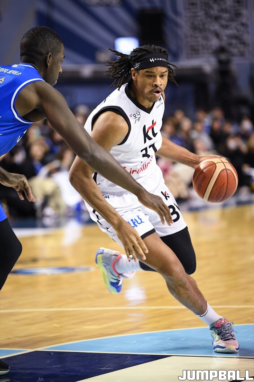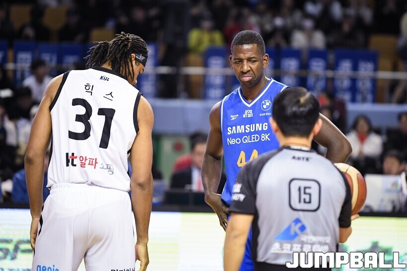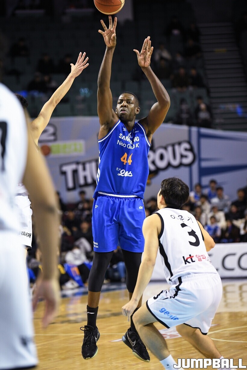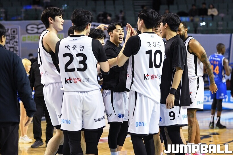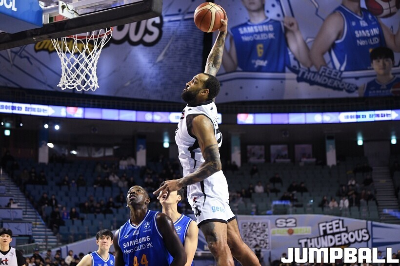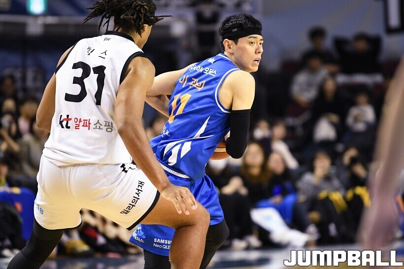 [점프볼=잠실/유용우 기자] 24일 잠실실내체육관에서 열린 2025-2026 LG전자 프로농구 서울 삼성과 수원 KT의 경기,KT가 78-71로 삼성에 원정 승리를 거뒀다. 데릭 윌리엄스는 23점을 올리며 팀 승리를 이끌었다. KT 강성욱은 17점 4리바운드 7어시스트 3스틸을 기록하며 원정 승리에 기여했다.