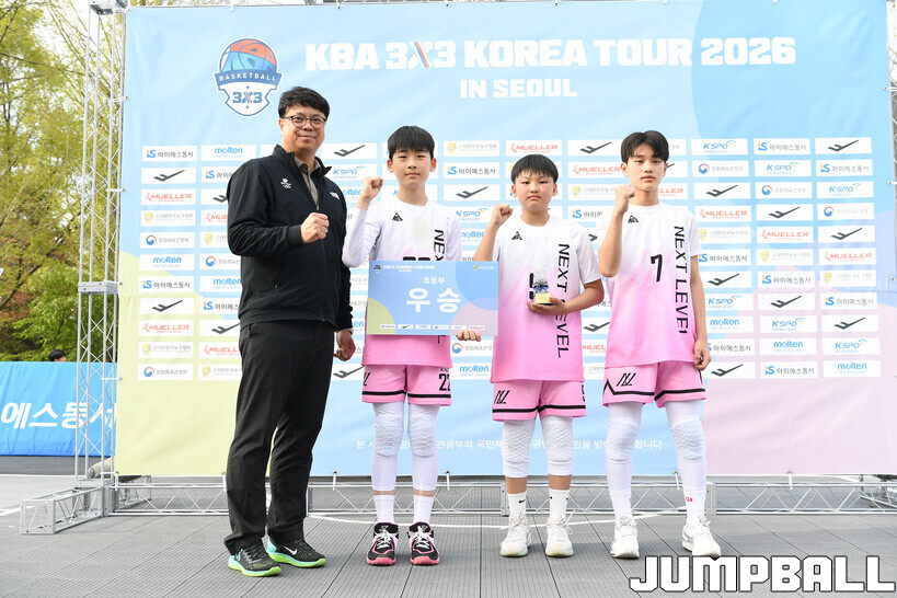 넥스트레벨 A는 12일 어린이대공원 열린무대 앞 특설코트에서 열린 KBA 3x3 코리아투어 2026 서울대회 초등부 결승에서 김포 SK 엘리트를 18-15로 누르고 우승에 성공했다.