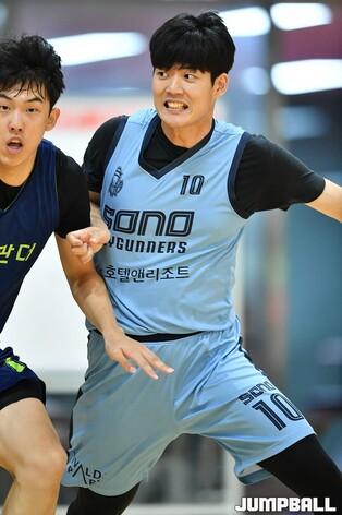 10일 고양체육관 보조체육관에서 열린 고양 소노와 성균관대의 연습경기, 소노 김민욱이 리바운드를 잡고 있다. [점프볼=고양/유용우 기자]