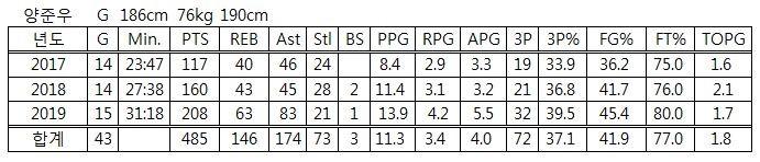 양준우의 지명순위는 4학년 활약에 따라서 달라질 것이다. 만약 6순위에 뽑힌다고 해도 김지완이나 박지훈, 김낙현처럼 한 팀의 주축 가드로 발돋움할 높은 가능성을 갖고 있다.