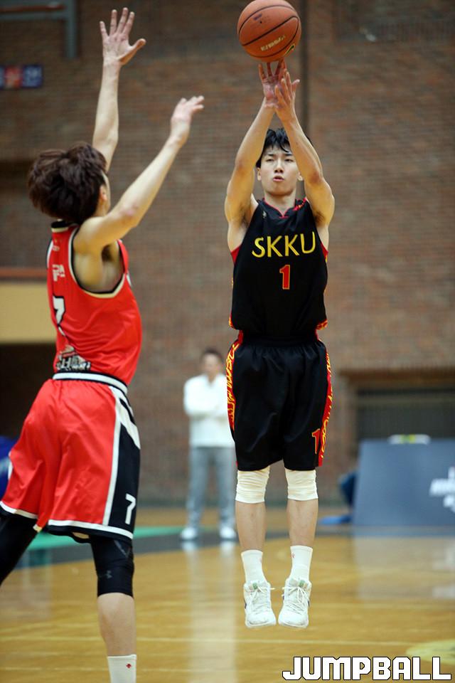 무엇보다 눈에 띄는 건 3점슛성공률이다. 양준우는 1학년부터 경기당 1.4개의 3점슛을 성공하면서도 성공률 33.9%(19/56)를 기록했다. 2학년 땐 36.8%(21/57)에 이어 3학년 땐 39.5%(32/81)였다. 평균 3점슛 성공도 1.5개에 이어 2.1개로 더 많이 넣으면서도 정확도를 더 높인 것이다. 3점슛 라인 한 발 뒤에서도 3점슛을 던질 정도로 슛 거리도 길다. 수비도 부족하지 않다.
