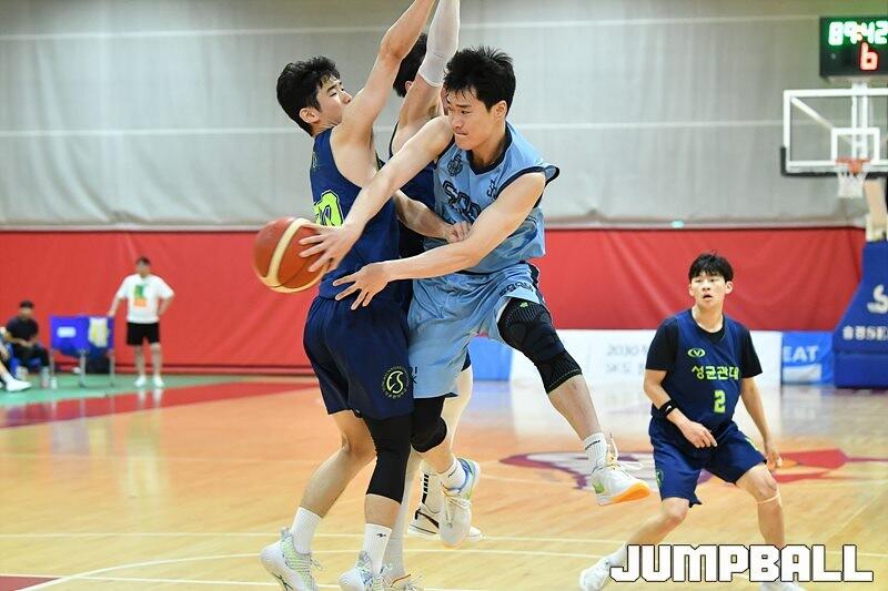 10일 고양체육관 보조체육관에서 열린 고양 소노와 성균관대의 연습경기, 소노 김진유가 패스를 내주고 있다. [점프볼=고양/유용우 기자]