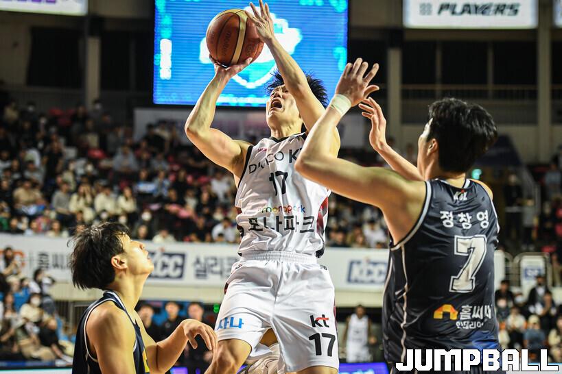 26일 전주실내체육관에서 열린 2022-2023 SKT 에이닷 프로농구 전주 KCC와 수원 KT의 경기, KCC가 연장까지 가는 혈투끝에 KT에 89-88로 승리했다. KCC와 KT 경기 화보.