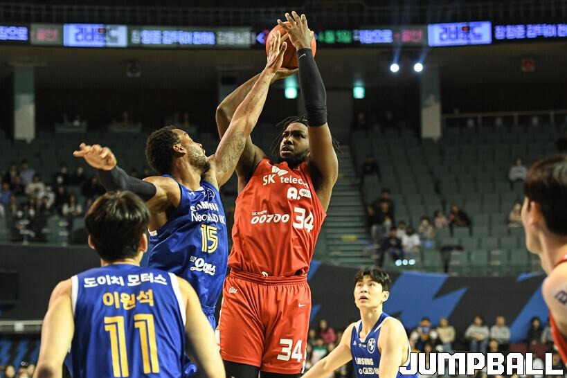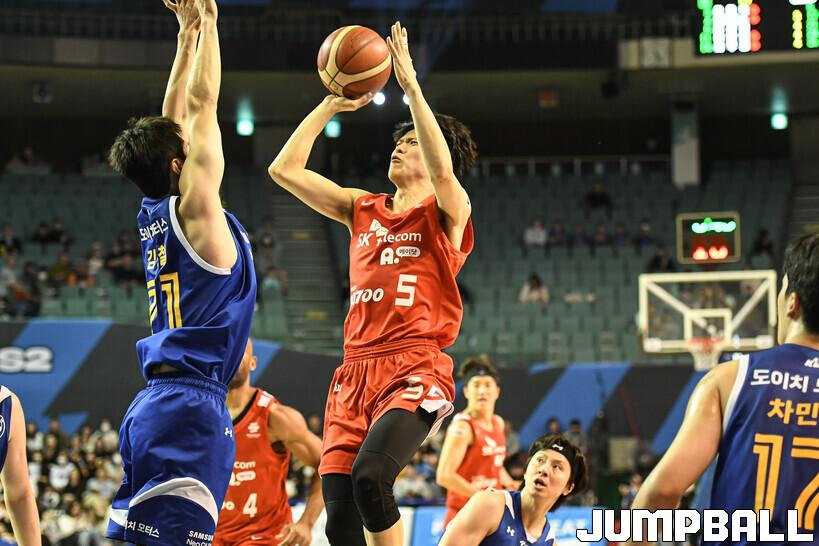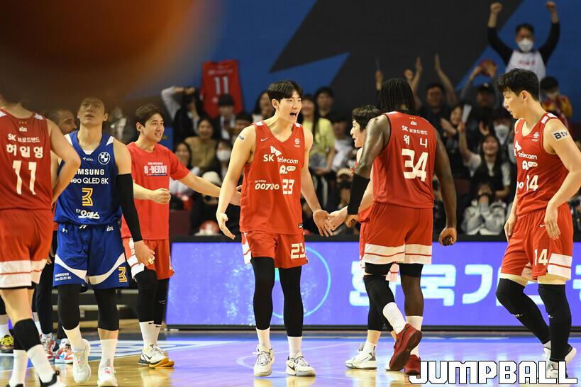 19일 잠실체육관에서 열린 2022-2023 SKT 에이닷 프로농구 서울 삼성과 서울 SK의 이번 시즌 마지막 S더비 경기, SK가 삼성에 78-72로 승리했다. SK와 삼성 경기 화보.
