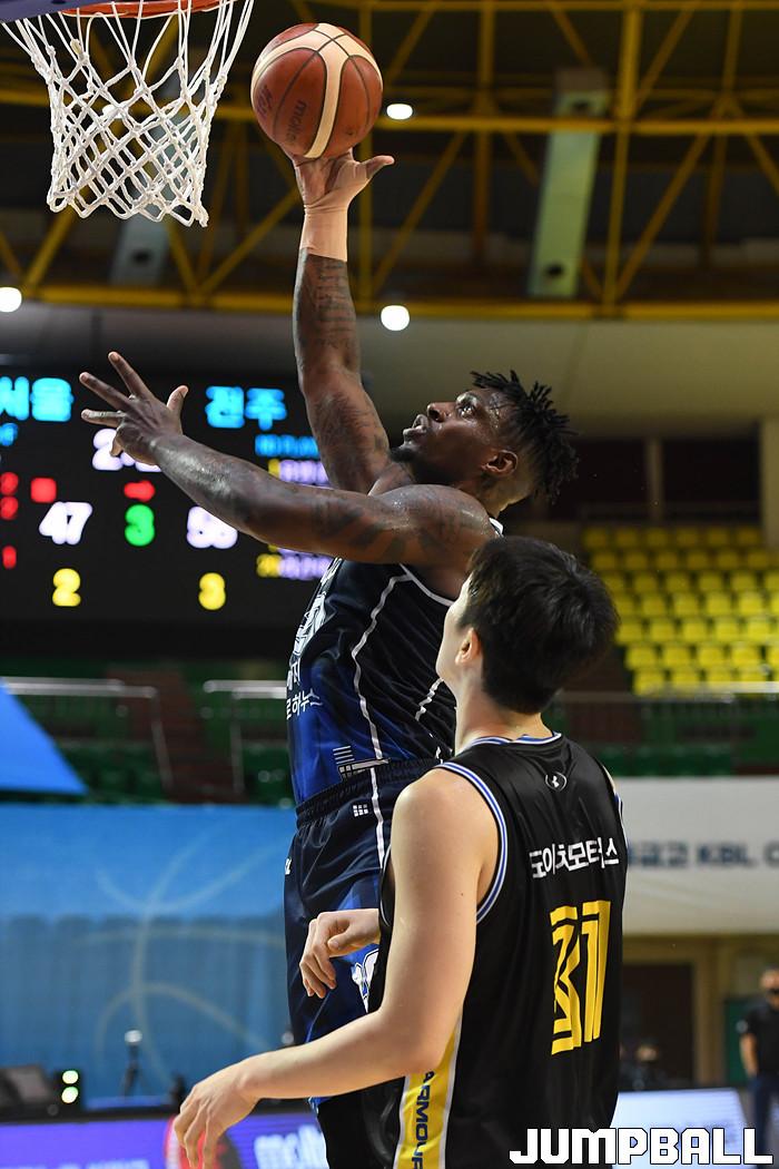 [점프볼=군산/박상혁 기자] 21일 군산월명체육관에서 열린 2020 MG새마을금고 KBL컵 서울 삼성과 전주 KCC 경기, KCC 라건아가 골밑슛을 시도하고 있다.