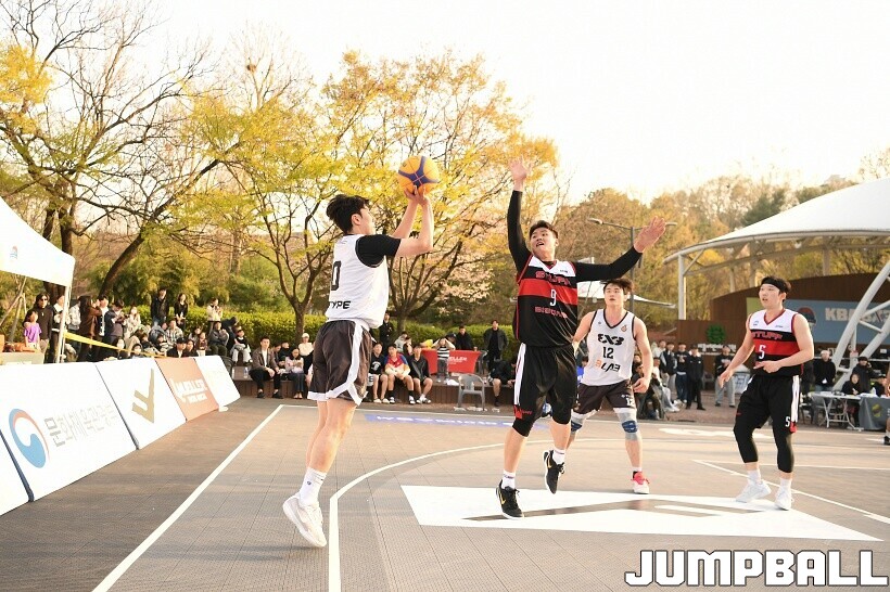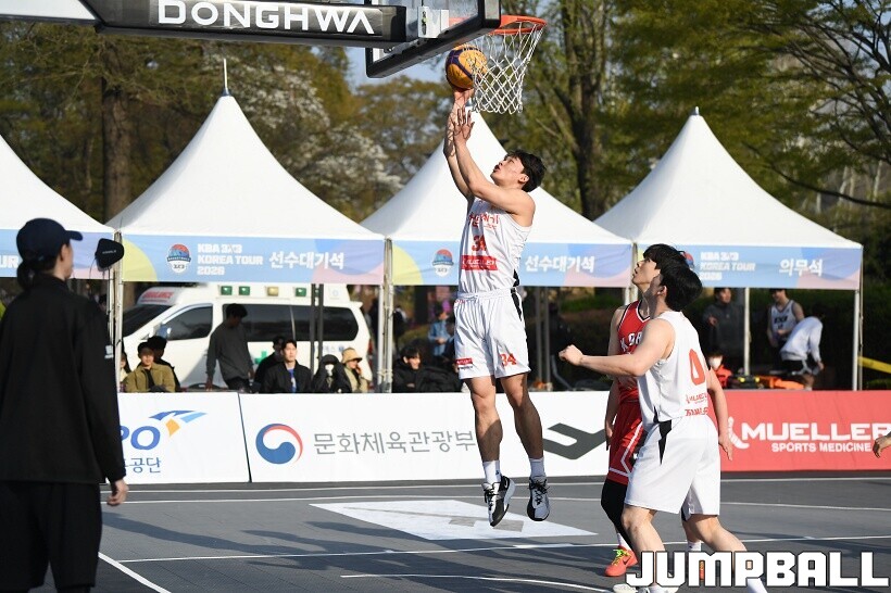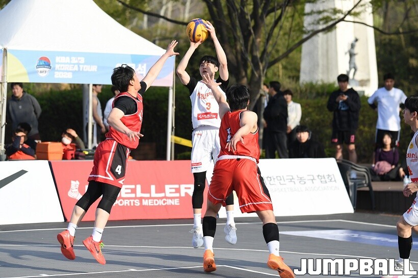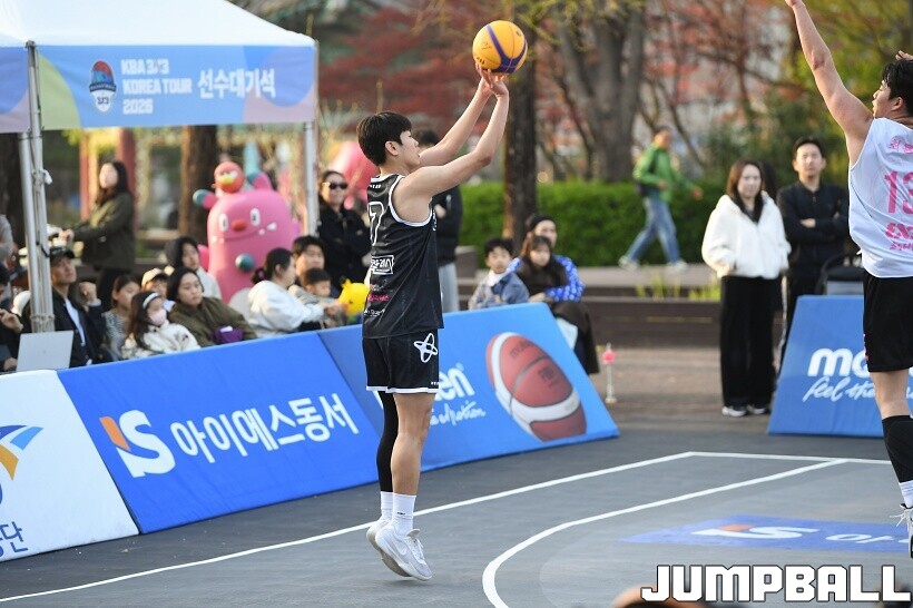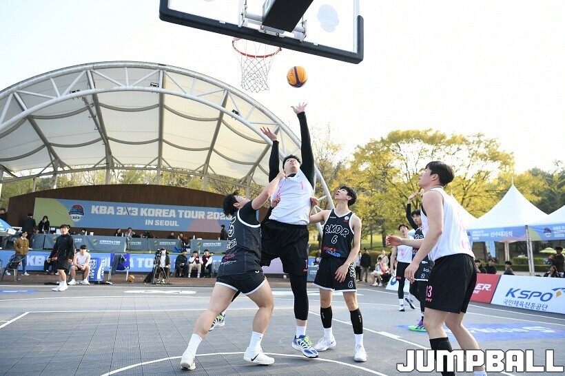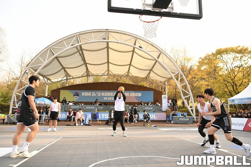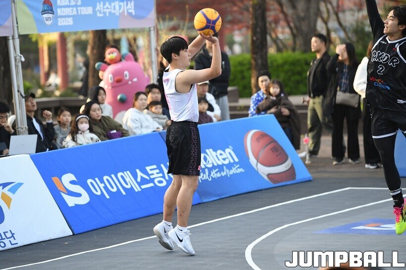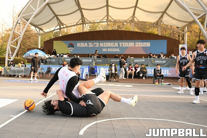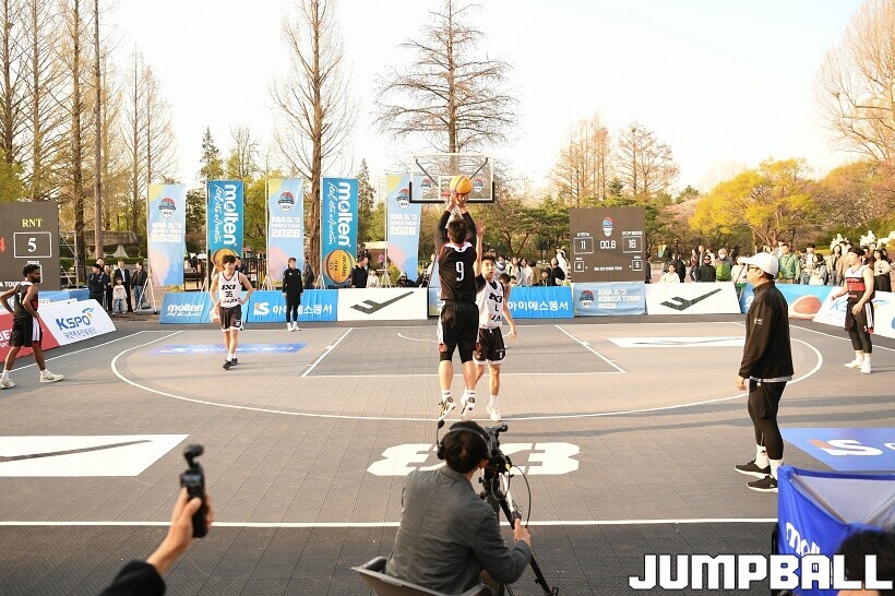 [점프볼=서울/유용우 기자] 11일 서울어린이대공원 열린무대 앞 특설코트에서 KBA 3x3 코리아투어 2026 서울대회 1일차 경기가 열렸다. 초등부, 중등부, 고등부, 오픈부, 여자오픈부 5개 종별 61개팀 234명이 참가하여 이틀에 걸쳐 진행된다. KBA 3x3 코리아투어 2026 서울대회 참가 선수들이 치열한 경쟁을 펼치고 있다. KBA 3x3 코리아투어 2026 서울대회 1일차 화보 03