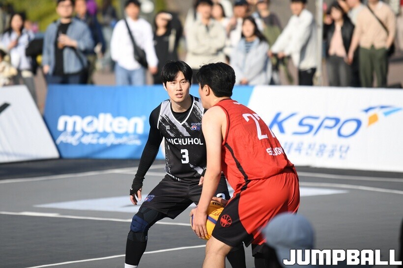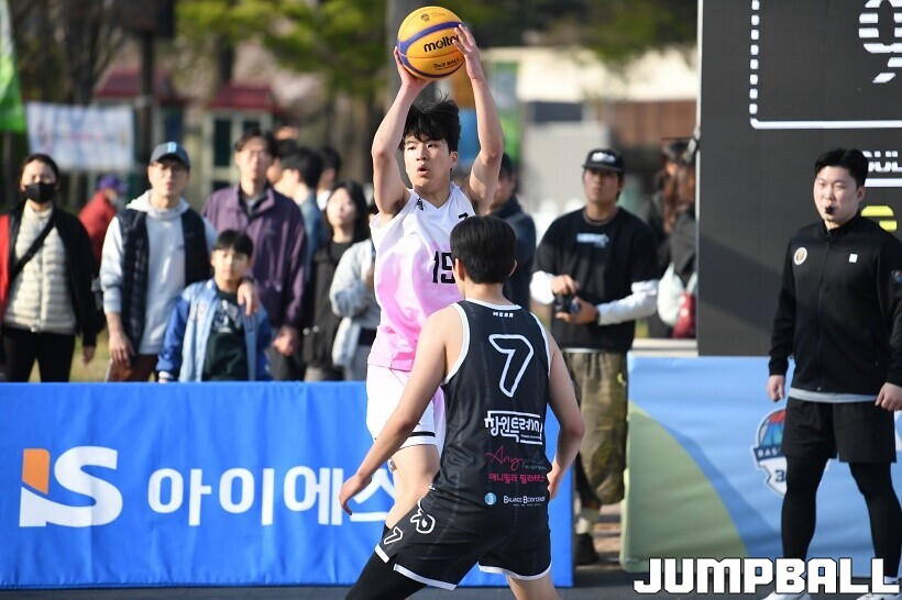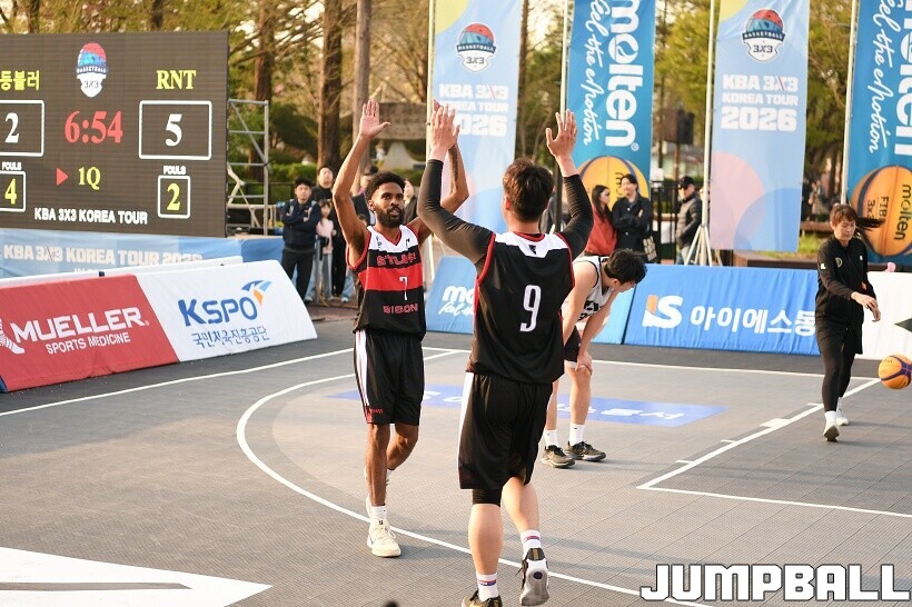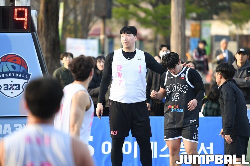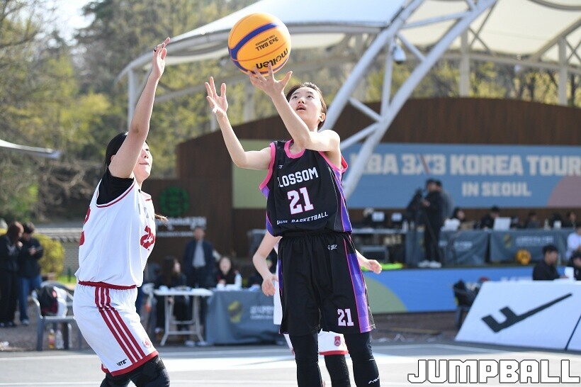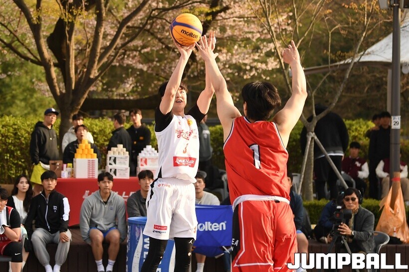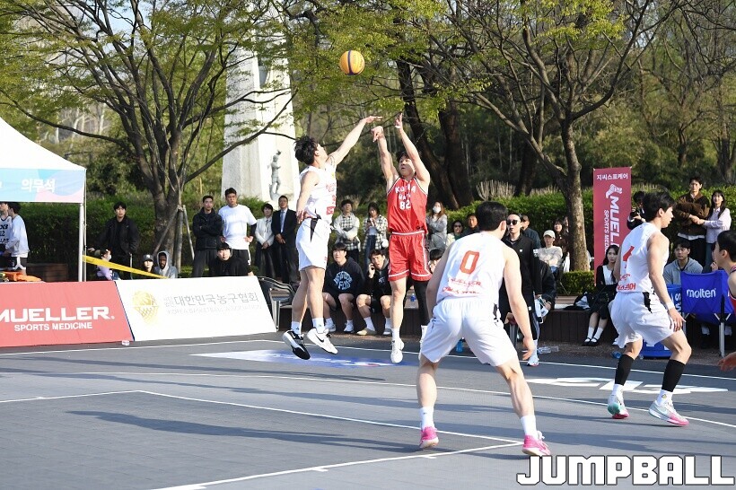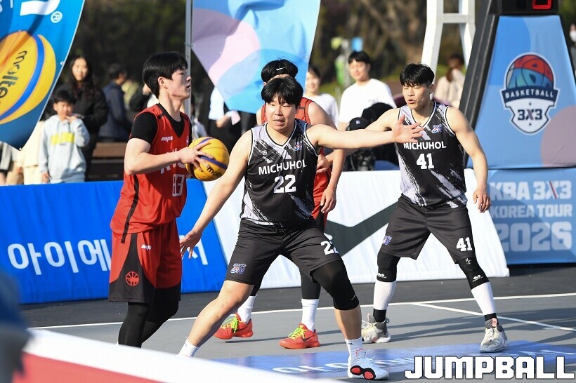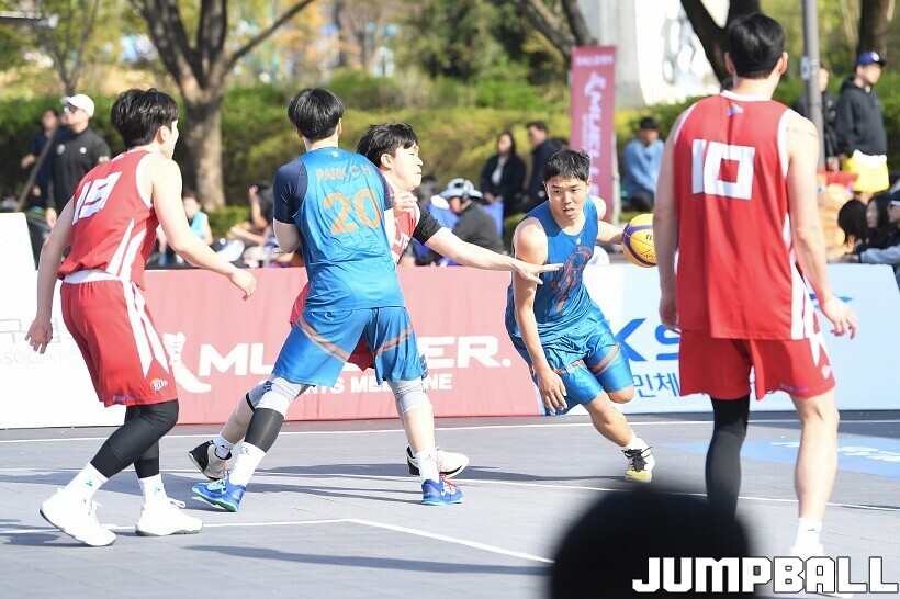 [점프볼=서울/유용우 기자] 11일 서울어린이대공원 열린무대 앞 특설코트에서 KBA 3x3 코리아투어 2026 서울대회 1일차 경기가 열렸다. 초등부, 중등부, 고등부, 오픈부, 여자오픈부 5개 종별 61개팀 234명이 참가하여 이틀에 걸쳐 진행된다. KBA 3x3 코리아투어 2026 서울대회 참가 선수들이 치열한 경쟁을 펼치고 있다. KBA 3x3 코리아투어 2026 서울대회 1일차 화보 03