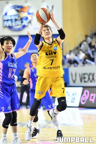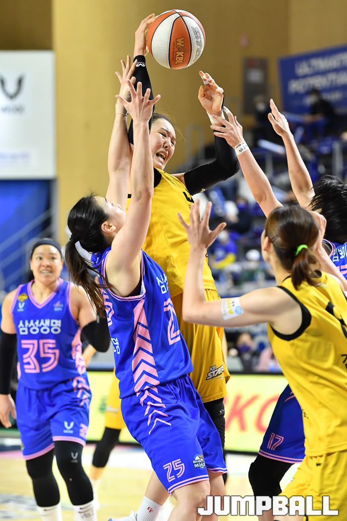 [점프볼=용인/유용우 기자] 15일 용인실내체육관에서 열린 'KB국민은행 Liiv M 2020-2021 여자프로농구' 용인 삼성생명과 청주 KB의 챔피언결정전 5차전, KB 박지수가 리바운드를 시도하고 있다.