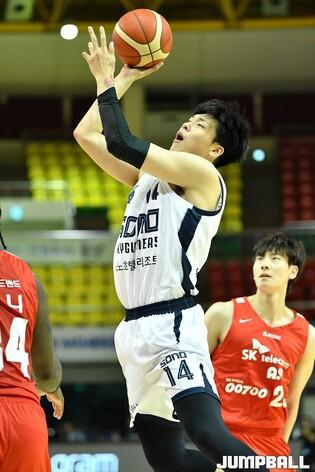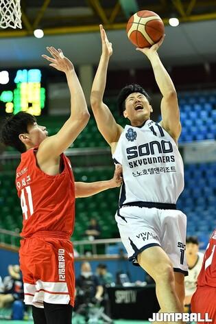 12일 군산월명체육관에서 열린 2023 MG새마을금고 KBL 컵대회 SK와 소노의 예선 경기, 소노 박종하가 슛을 시도하고 있다. [점프볼=군산/유용우 기자]