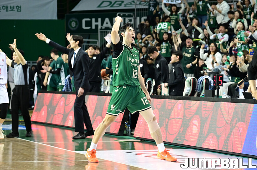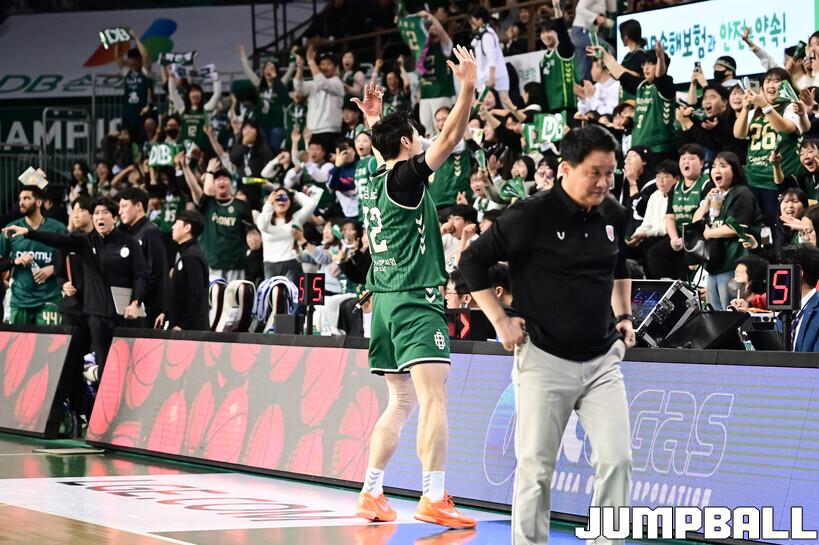 하이라이트는 따로 있었다. 정효근의 3점슛이 터진 후 만원 관중을 이룬 원주DB프로미아레나가 갑자기 들썩인 것. 정효근이 코트 중앙에 이동, 윈디(DB 팬 애칭)들을 향해 환호를 유도한 것이다. 두 팔을 번쩍 들어올리며 분위기를 끌어올린 해당 장면이야말로 진정한 ‘하이라이트’였다. 팬들과 진정으로 호흡하는 농구 선수라는 것을 정효근 스스로 증명한 것이다.