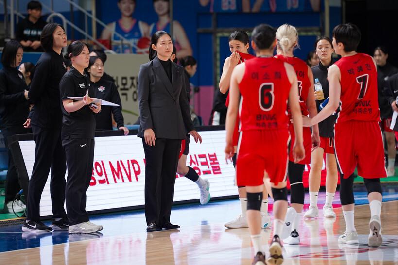 경기 후 BNK 박정은 감독은 “전반은 상대 벤치 앞이라 쓰지 않았다. 후반 시작과 동시에 지역방어를 섰는데 선수들이 잘 움직여주면서 흐름을 잘 잡았다. 우리 벤치 앞이라 내가 잡아줄 수 있었다. 삼성생명 가드진이 약하다고 생각해서 지역방어를 꺼내들었다. 선수들이 잘해준 덕분에 효과가 있었다”며 만족감을 표했다.