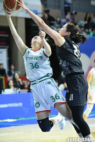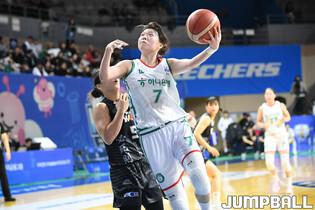 [점프볼=아산/유용우 기자] 21일 아산 이순신체육관에서 열린 하나은행 2024~2025 여자프로농구 아산 우리은행과 부천 하나은행의 경기, 하나은행 박소희가 레이업을 올리고 있다.