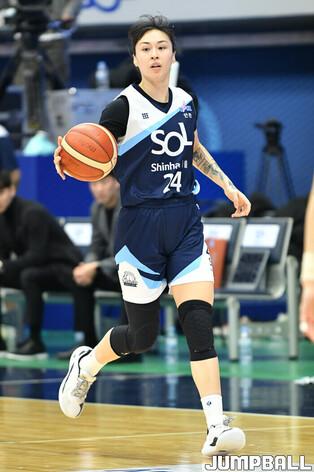 [점프볼=인천/유용우 기자] 24일 인천 도원체육관에서 열린 우리은행 우리WON 2023~2024 여자프로농구 인천 신한은행과 부천 하나원큐의 경기, 신한은행 김지영이 경기를 리딩하고 있다.