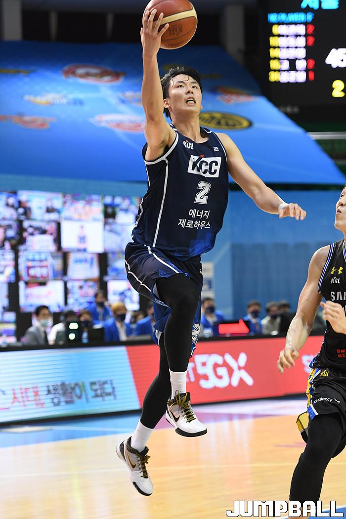 [점프볼=군산/박상혁 기자] 21일 군산월명체육관에서 열린 2020 MG새마을금고 KBL컵 서울 삼성과 전주 KCC 경기, KCC 송교창이 레이업슛을 시도하고 있다.