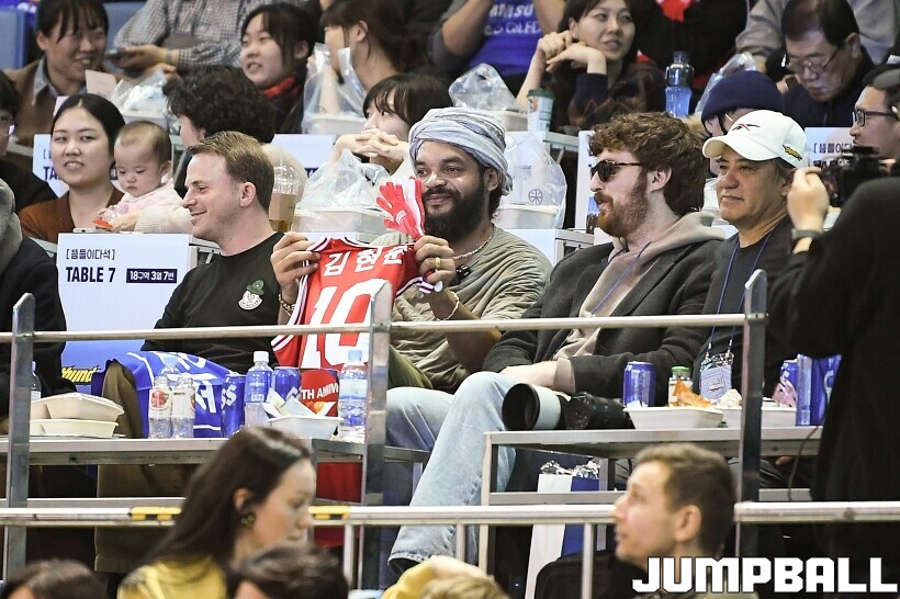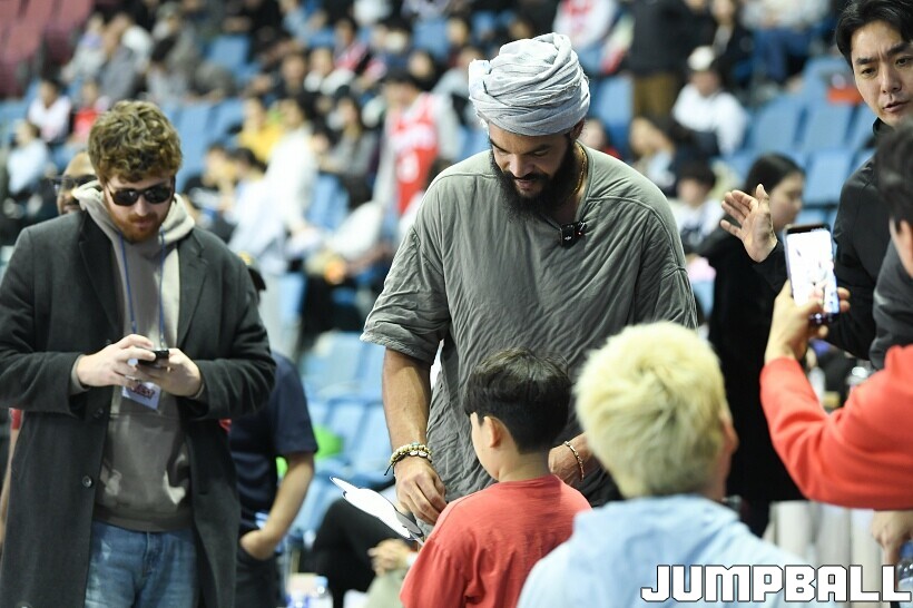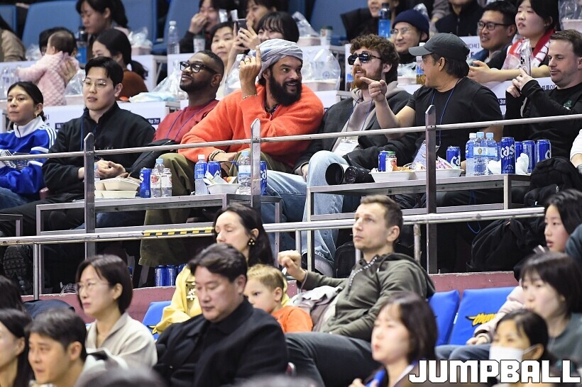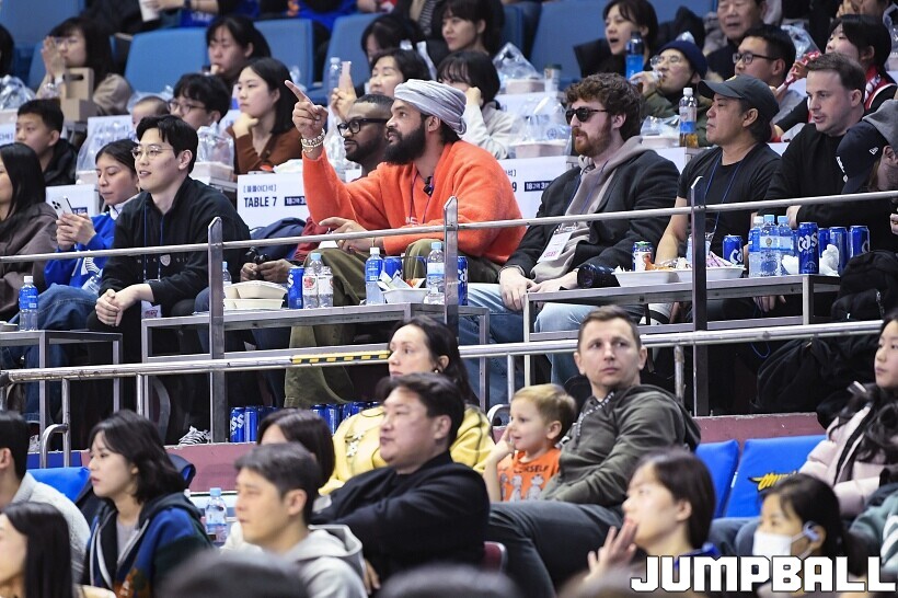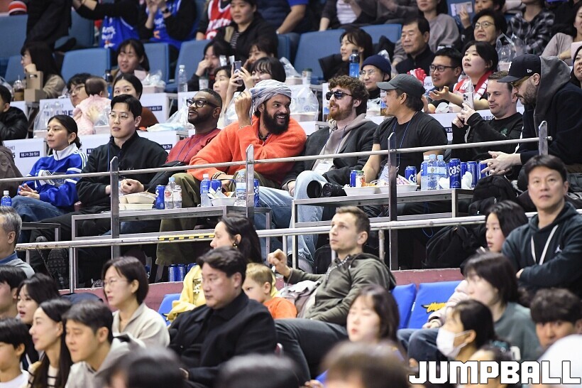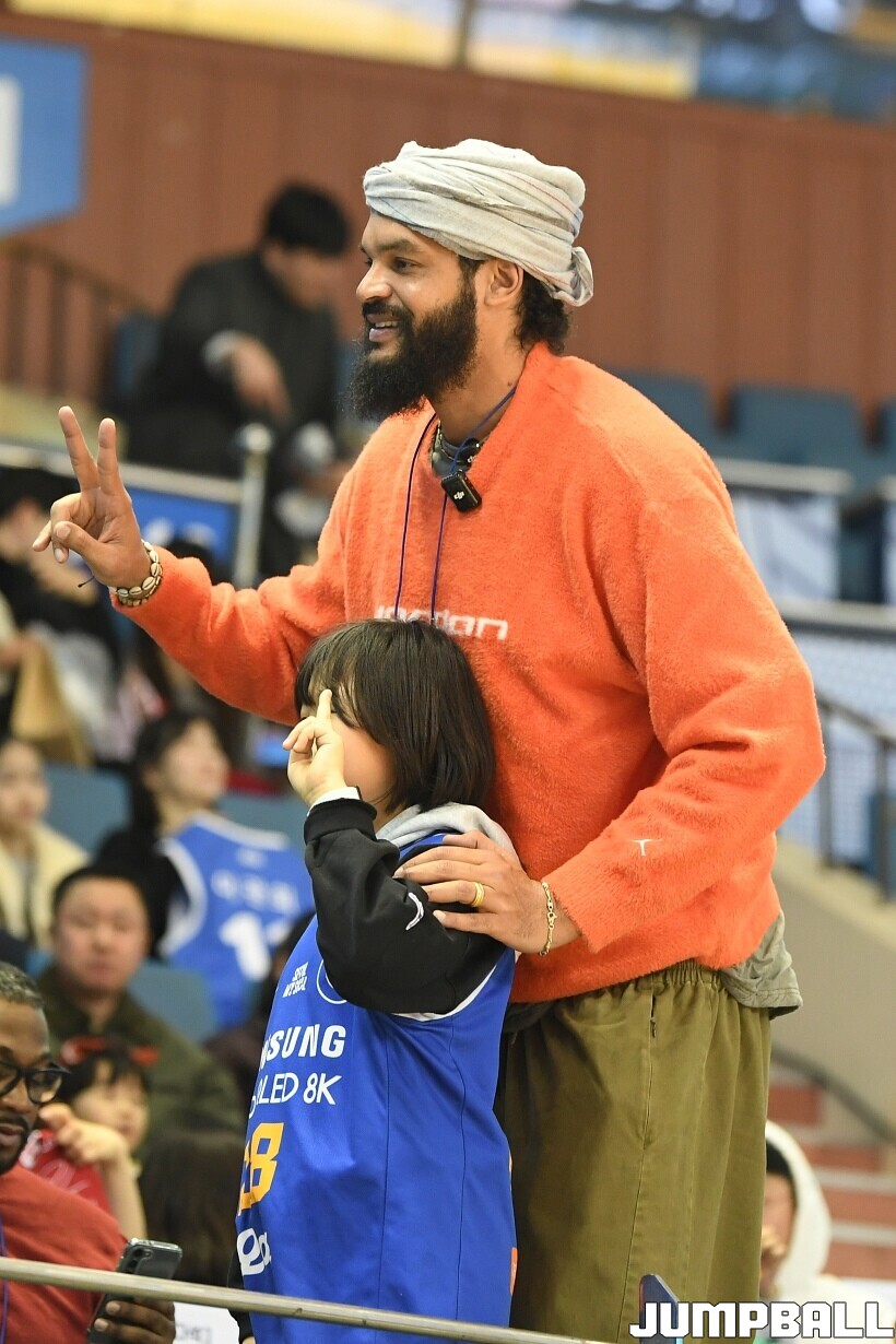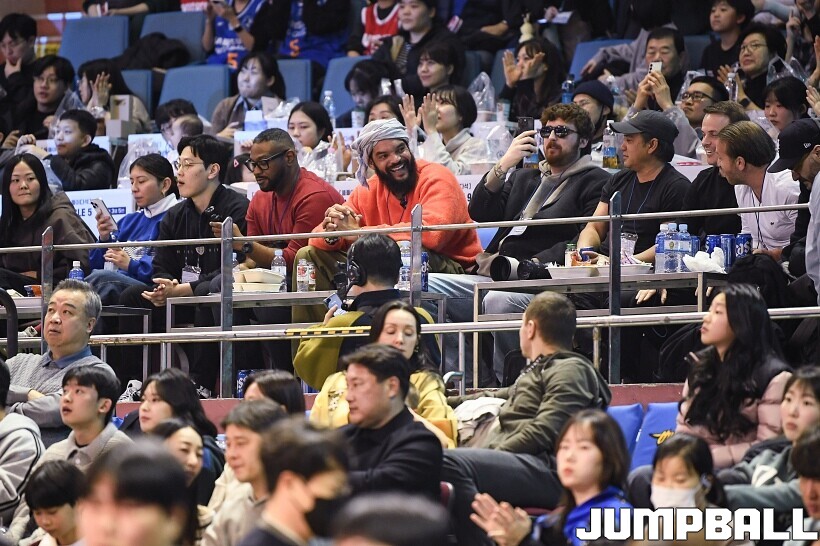 [점프볼=잠실/유용우 기자] 17일 잠실실내체육관에서 열린 2025-2026 LG전자 프로농구 서울 삼성과 서울 SK의 경기, 전 NBA 선수인 조아킴 노아가 삼성과 SK 경기를 관전했다. 지인들과 함께 잠실실내체육관을 찾은 노아는 팬들의 사진촬영 요청에 하나하나 응하며 NBA에서 몸에 밴 팬서비스 마인드를 보여줬다. 노아는 경기 관전 중간 팬들과 인사를 나누고,응원에 참여하는 등 KBL을 즐기고 흥미롭게 관전했다.
