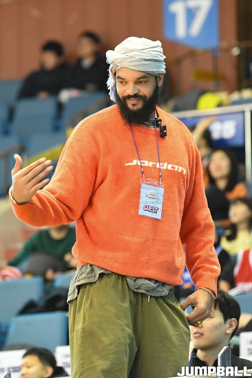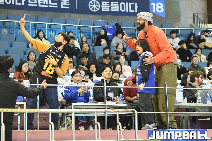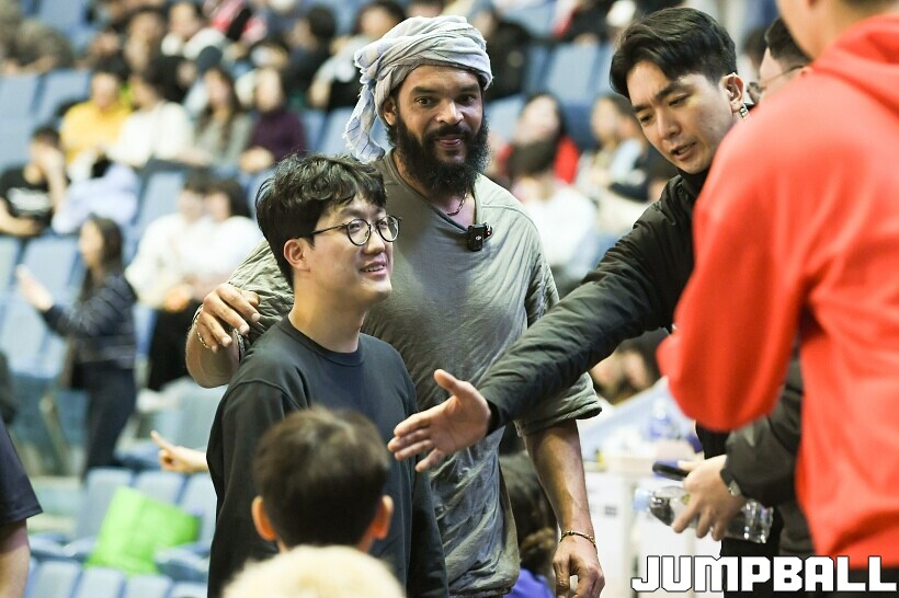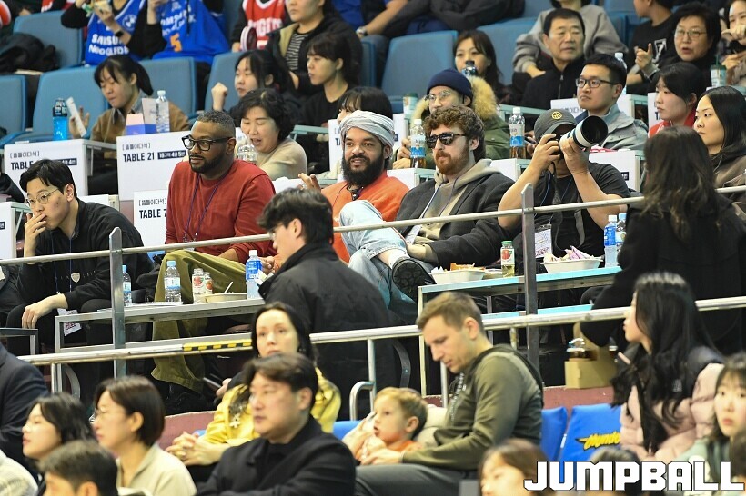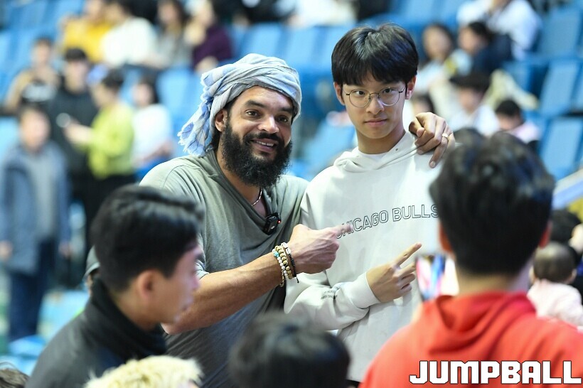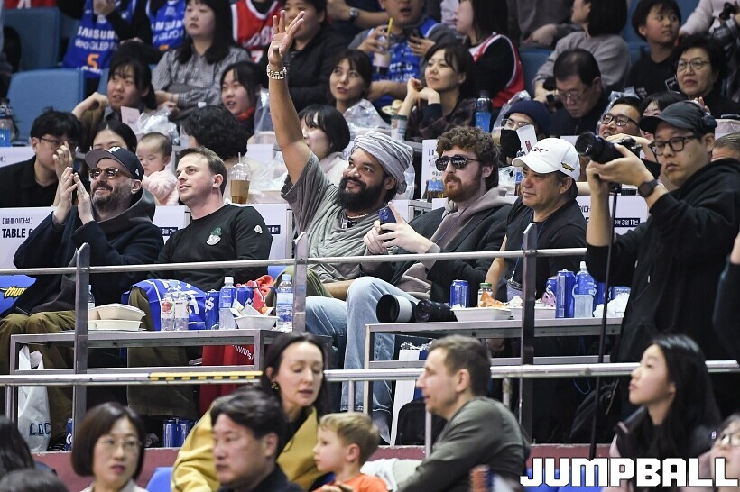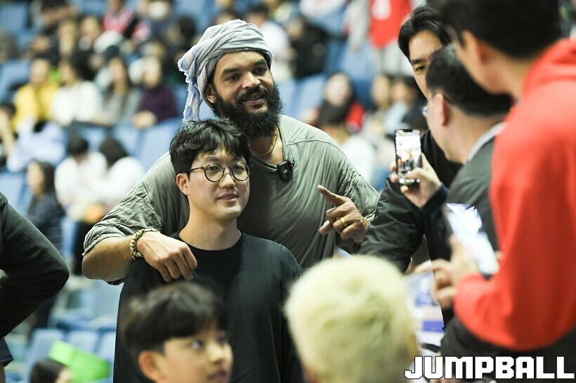 [점프볼=잠실/유용우 기자] 17일 잠실실내체육관에서 열린 2025-2026 LG전자 프로농구 서울 삼성과 서울 SK의 경기, 전 NBA 선수인 조아킴 노아가 삼성과 SK 경기를 관전했다. 지인들과 함께 잠실실내체육관을 찾은 노아는 팬들의 사진촬영 요청에 하나하나 응하며 NBA에서 몸에 밴 팬서비스 마인드를 보여줬다. 노아는 경기 관전 중간 팬들과 인사를 나누고,응원에 참여하는 등 KBL을 즐기고 흥미롭게 관전했다.