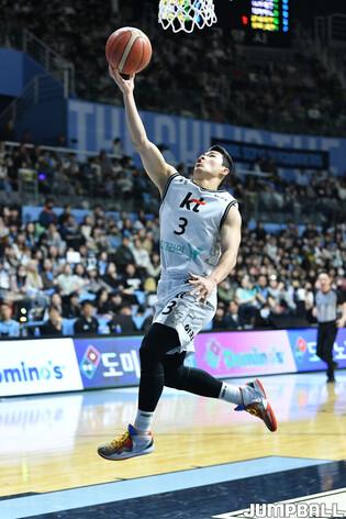 [점프볼=고양/유용우 기자] 31일 고양 소노 아레나에서 열린 2023-2024 정관장 프로농구 소양 소노와 수원 KT의 경기, KT 한희원이 리바운드를 잡고 있다.