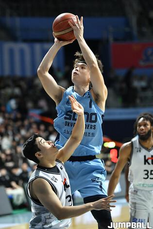 [점프볼=고양/유용우 기자] 31일 고양 소노 아레나에서 열린 2023-2024 정관장 프로농구 소양 소노와 수원 KT의 경기, KT 에릭이 레이업 득점을 올리고 있다.