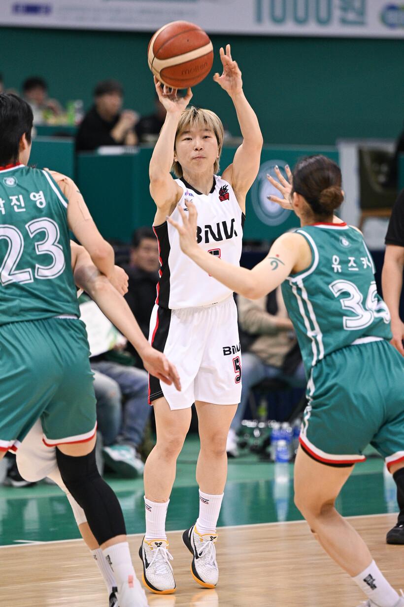 부산 BNK썸은 19일 부천체육관에서 열린 하나은행 2024~2025 여자프로농구 정규리그 부천 하나은행과의 경기에서 72-57로 승리했다.