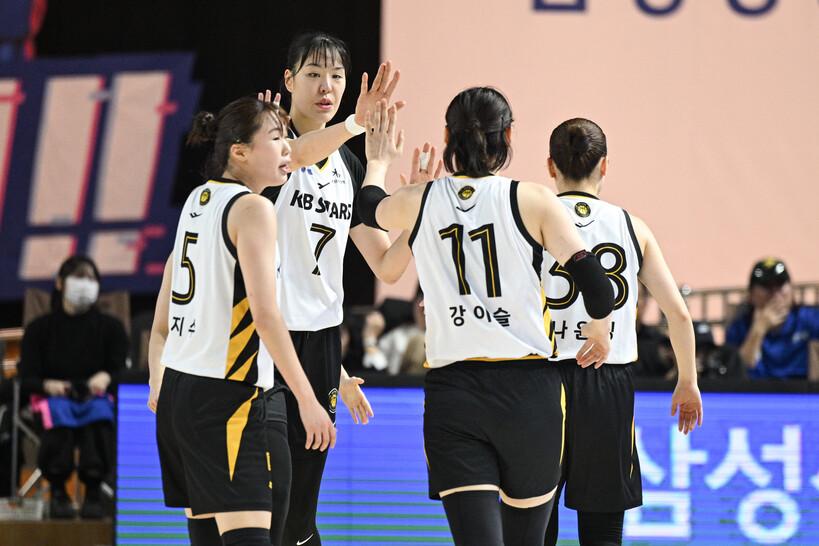 KB스타즈는 2쿼터 스코어 25-6으로 전반을 48-26으로 마쳤다. 전반에만 10개의 3점슛을 성공했다. 삼성생명보다 7개나 많았고, 이는 고스란히 점수 차로 드러났다. 후반에도 양상은 비슷하게 흘러갔고, 결과에 큰 영향을 주지 못했다.