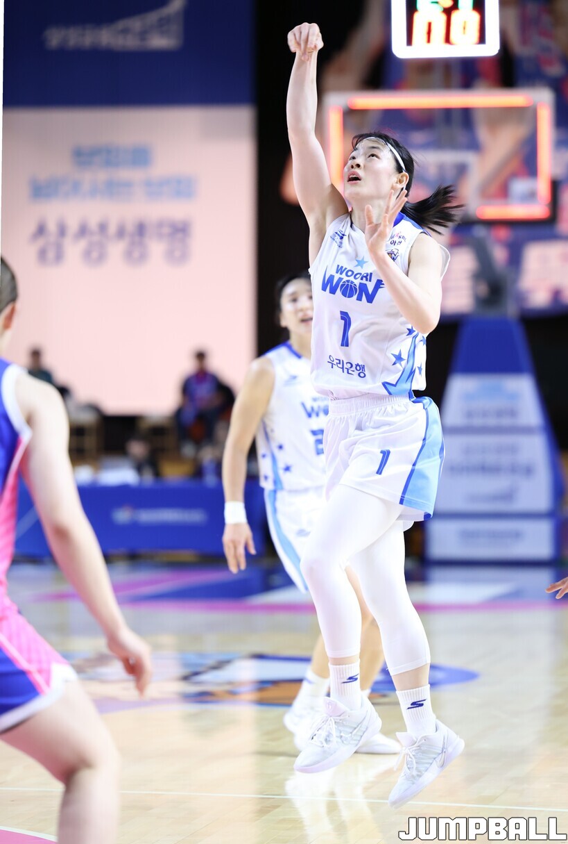 [점프볼=용인/김소희 인터넷기자] 아산 우리은행은 3일 용인체육관에서 열린 BNK금융 2025~2026 여자프로농구 정규리그 용인 삼성생명과의 경기에서 61-50으로 승리했다. 정규리그 최종전에서 승리를 거둔 우리은행은 극적으로 플레이오프 진출 막차를 탔다. BNK가 5위로 떨어졌다.