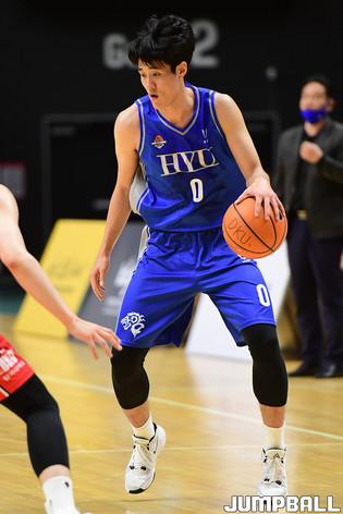 [점프볼=수원/박상혁 기자] 25일 서수원칠보체육관에서 열린 2021 KUSF 대학농구 U-리그 한양대와 단국대 경기, 한양대 정재훈 감독이 선수들에게 지시 하고 있다.