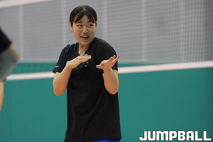 [점프볼=용인/박상혁 기자] 3일 용인에 위치한 삼성휴먼센터에서 삼성생명 선수단이 오후에 특별 활동을 하고 있다. 매주 수요일은 농구가 아닌 다른 종목을 체험하는 시간을 가지면서 분위기를 끌어올리고 있다. 삼성생명 이명관이 배구 경기중에 점수판을 맡고 있는 김한별을 바라보고 있다.