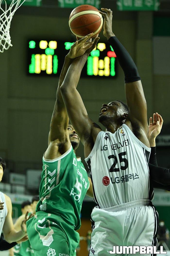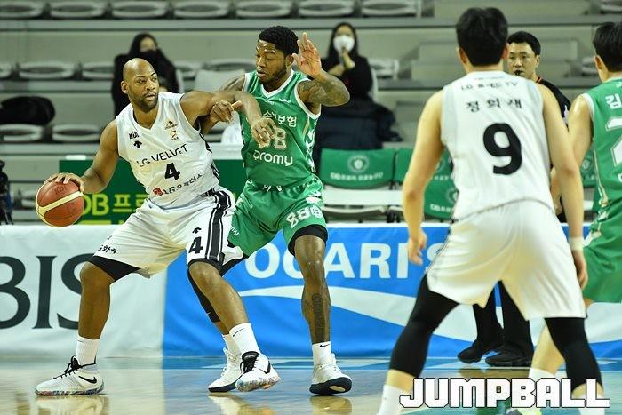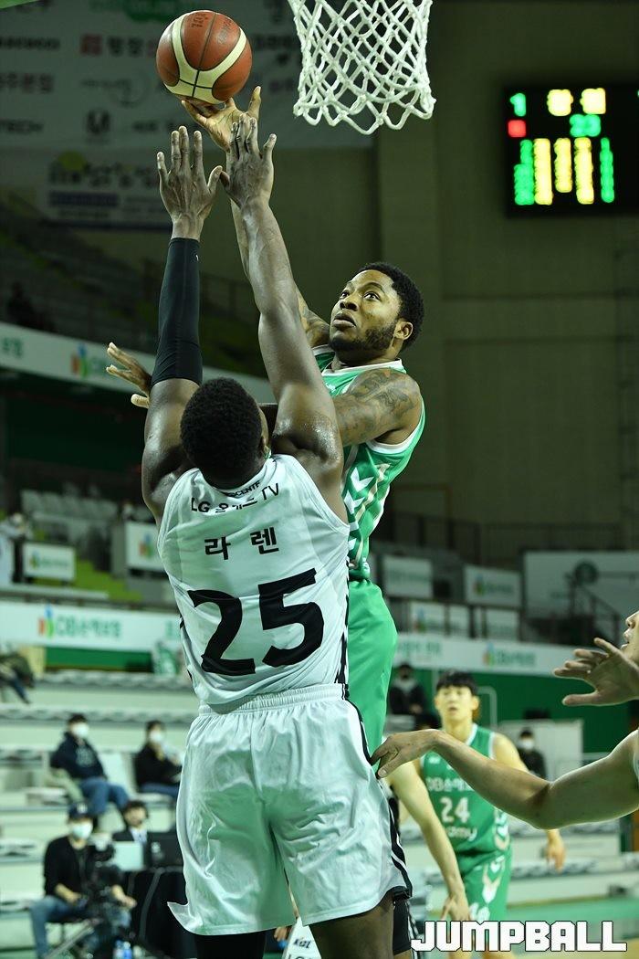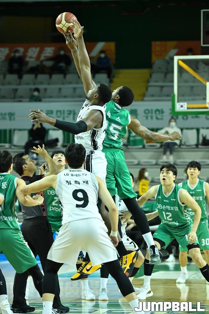 [점프볼=원주/유용우 기자] 18일 원주 종합체육관에서 열린 2020-2021 현대모비스 프로농구 원주 DB와 창원 LG의 경기, DB가 78-67로 LG에 홈 승리를 거두었다.