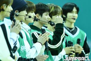 26일 부천체육관에서 열린 우리은행 우리WON 2023-2024 여자프로농구 하나원큐와 신한은행의 경기, 하나원큐 홈경기장을 방문한 보이그룹 루네이트가 하프타임 공연을 펼치고 있다. [점프볼=부천/유용우 기자]