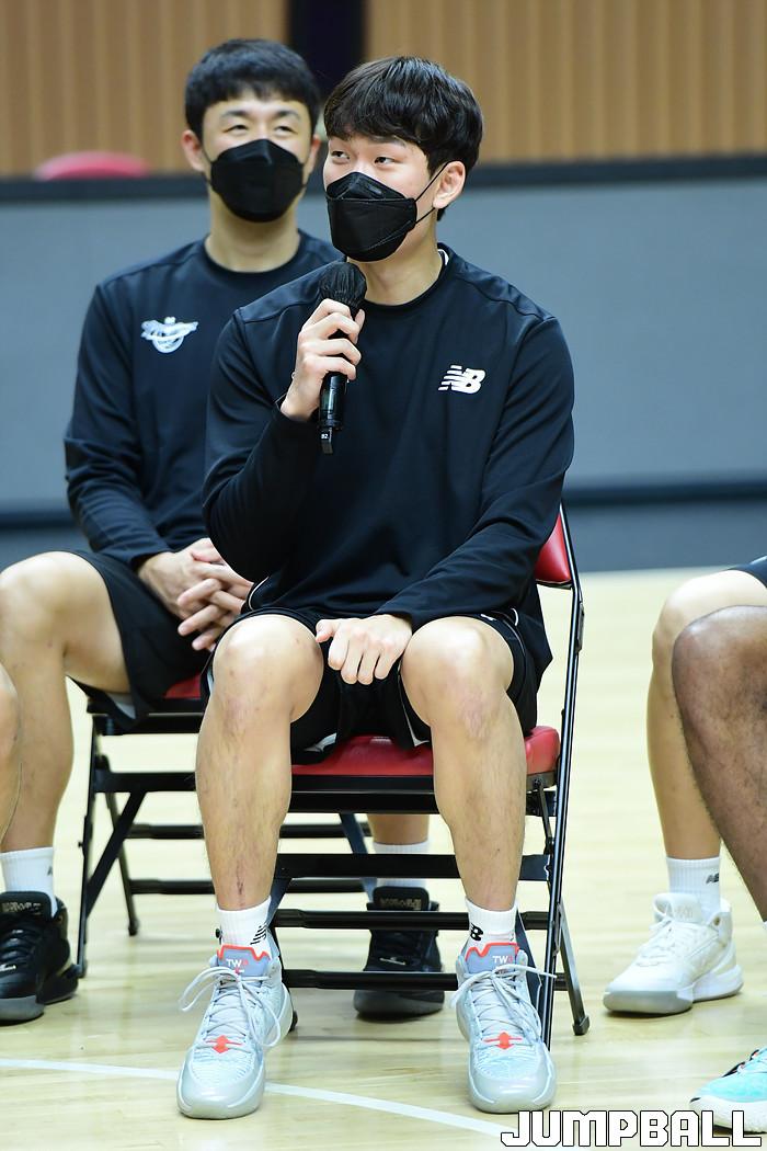 2일 경기도 수원에 위치한 수원 KT 소닉붐 아레나에서 수원 KT가 온라인 출정식을 가졌다. KT 김준환이 이번 시즌 각오를 이야기 하고 있다.