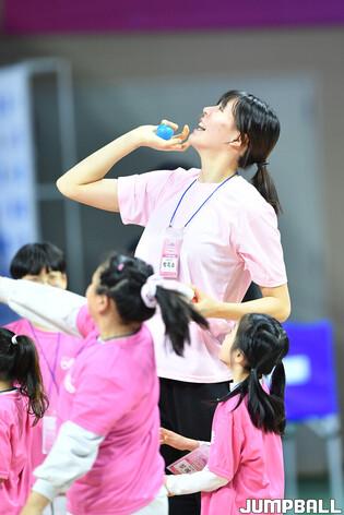[점프볼=아산/유용우 기자] 06일 아산 이순신체육관에서 열린 2023-2024 WKBL 올스타 페스티벌 ‘W-페스티벌’, WKBL 스타들이 아이들과 함께 명랑운동회를 진행하고 있다.