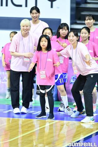 [점프볼=아산/유용우 기자] 06일 아산 이순신체육관에서 열린 2023-2024 WKBL 올스타 페스티벌 ‘W-페스티벌’, WKBL 스타들이 아이들과 함께 명랑운동회를 진행하고 있다.