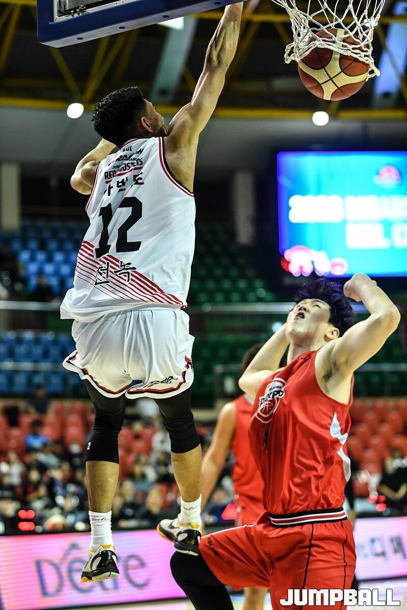 11일 군산월명체육관에서 열린 2023 MG새마을금고 KBL 컵대회 현대모비스와 정관장의 예선 경기, 정관장 아반도가 덩크를 성공하고 있다. [점프볼=군산/유용우 기자]