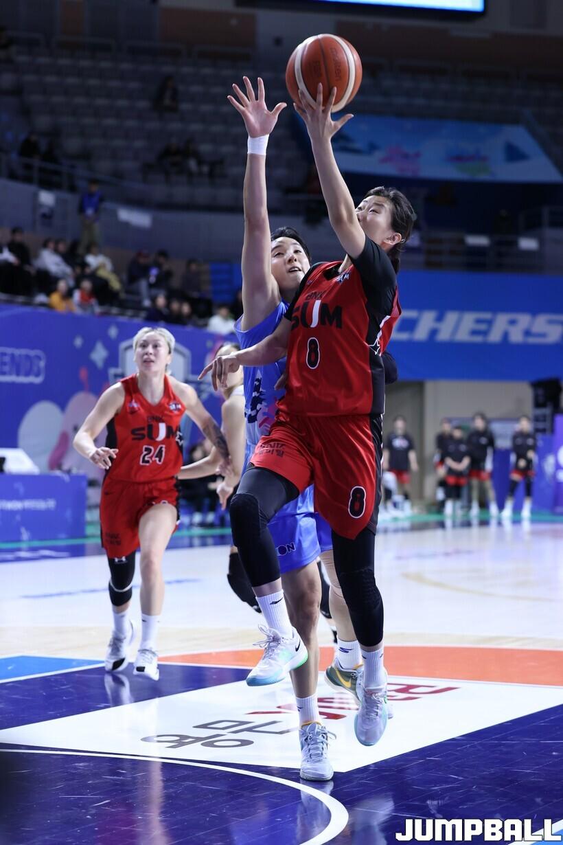 [점프볼=아산/김소희 인터넷기자] 아산 우리은행은 31일 아산이순신체육관에서 열린 BNK금융 2025~2026 여자프로농구 정규리그 부산 BNK썸과의 경기에서 75-61로 승리했다.