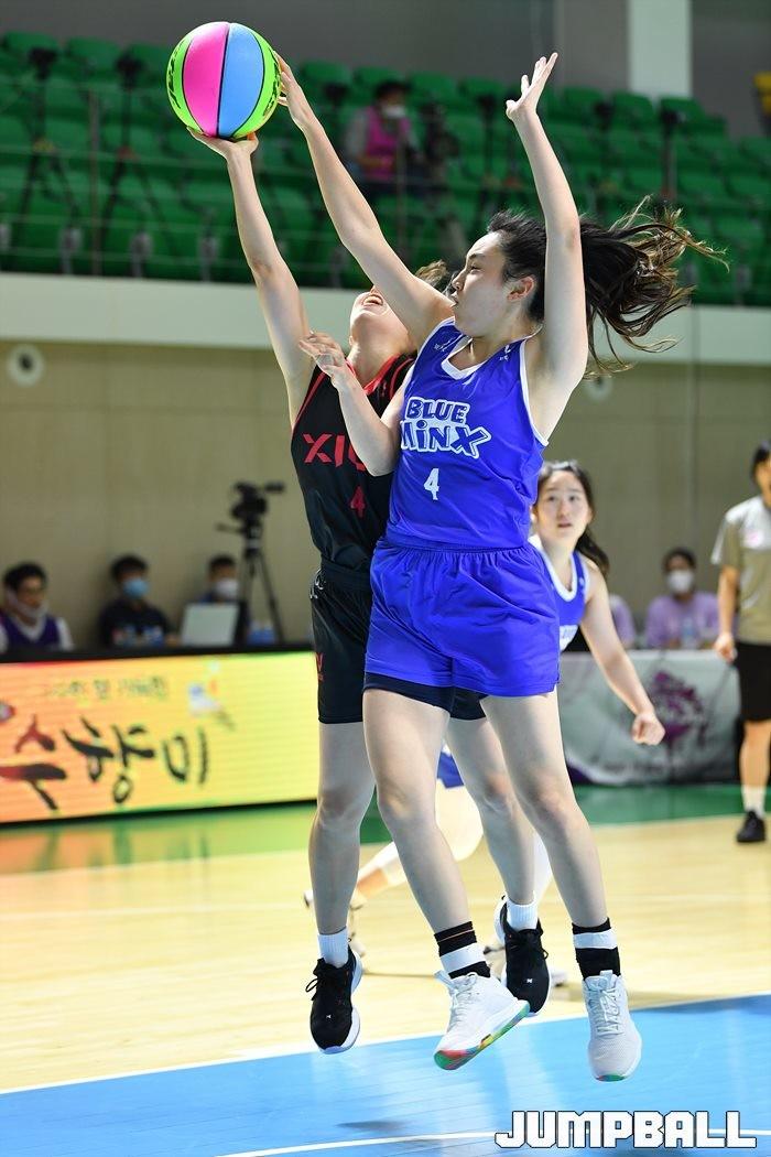 [점프볼=청라/유용우 기자] 20일 인천 서구 하나글로벌캠퍼스에 위치한 하나은행 연습체육관에서 열린 ‘2020 하나원큐 3x3 TRIPLE JAM(트리플잼)’ 1차 대회, 삼성생명 최서연이 엑시온의 공격을 블록으로 저지하고 있다.
