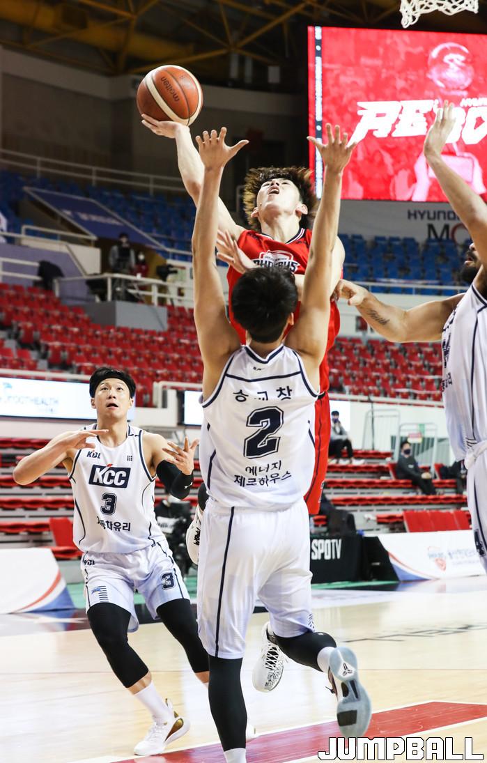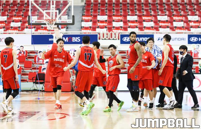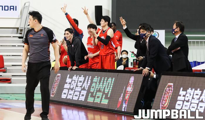 [점프볼=윤민호 기자]울산 현대모비스는 4일 울산동천체육관에서 열린 2020-2021 현대모비스 프로농구 4라운드 홈 경기에서 전주 KCC를 77-72로 승리했다.