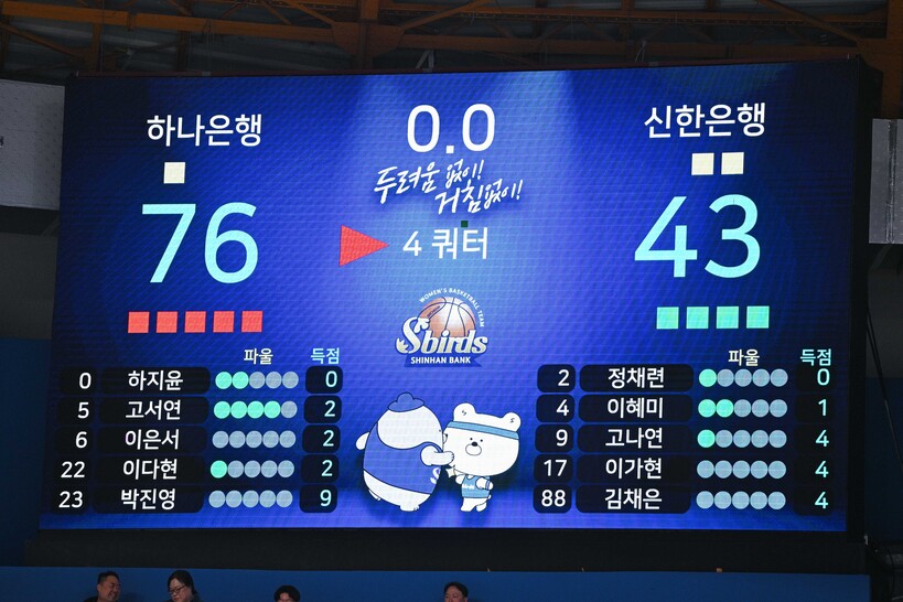 6위 신한은행 4패 .000