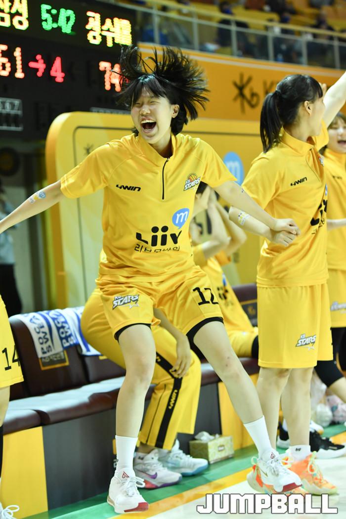 [점프볼=청주/유용우 기자] 11일 청주실내체육관에서 열린 'KB국민은행 Liiv M 2020-2021 여자프로농구' 청주 KB와 용인 삼성생명의 챔피언결정전 3차전, KB 벤치가 득점을 성공하자 환호하고 있다.