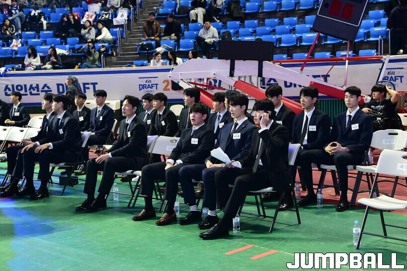 [점프볼=잠실학생/박상혁 기자] 14일 잠실학생체육관에서 2025 KBL 신인드래프트가 열렸다. 46명의 드래프트 참가자들이 프로 구단의 부름을 받기 위해 기다렸다.