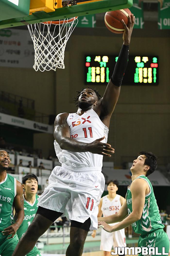 [점프볼=원주/박상혁 기자] 18일 원주종합체육관에서 열린 2020-2021 현대모비스 프로농구 원주 DB와 서울 SK의 경기, SK 워니가 골밑슛을 시도하고 있다.