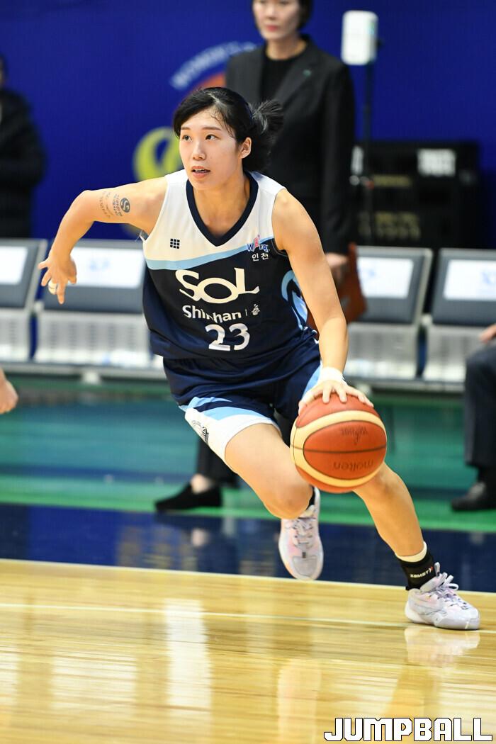 [점프볼=인천/유용우 기자] 24일 인천 도원체육관에서 열린 우리은행 우리WON 2023~2024 여자프로농구 인천 신한은행과 부천 하나원큐의 경기, 신한은행 이다연이 돌파를 하고 있다.