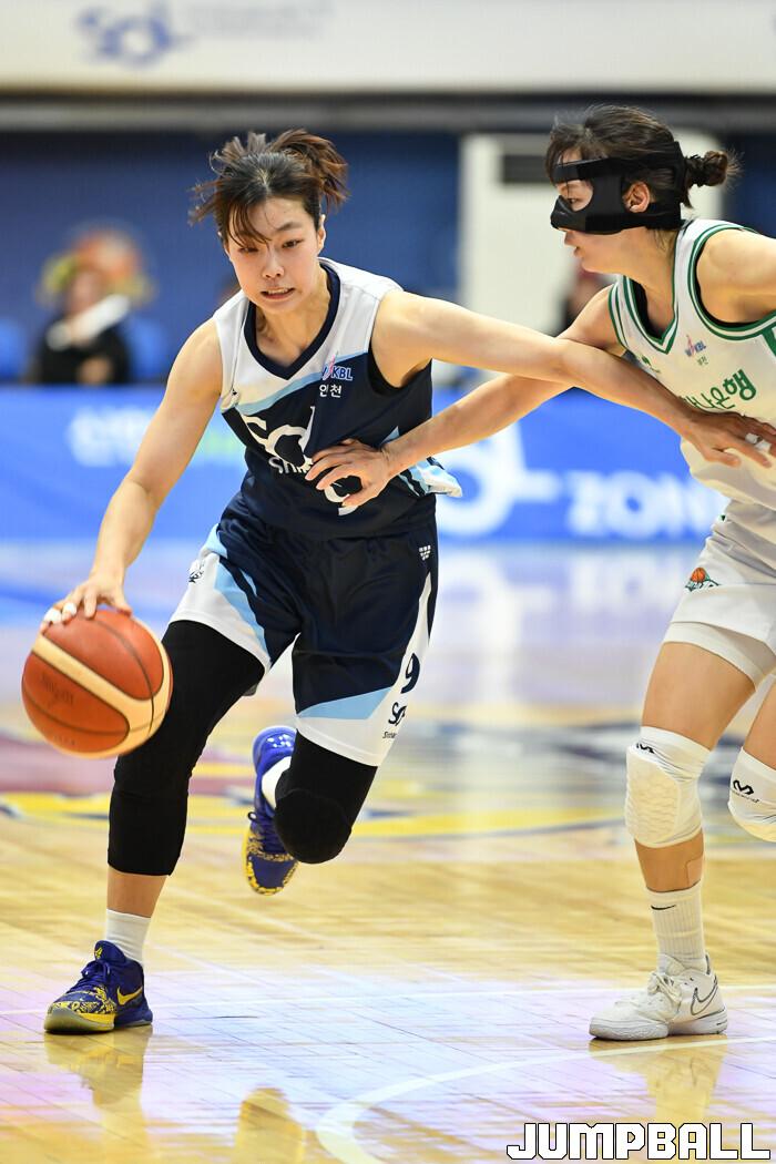 [점프볼=인천/유용우 기자] 24일 인천 도원체육관에서 열린 우리은행 우리WON 2023~2024 여자프로농구 인천 신한은행과 부천 하나원큐의 경기, 신한은행 이경은이 돌파를 시도하고 있다.