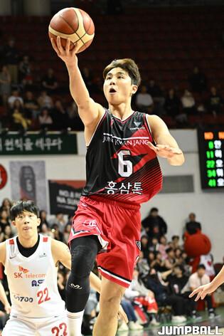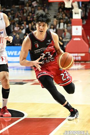[점프볼=안양/유용우 기자] 16일 안양 정관장 아레나에서 열린 2023-2024 정관장 프로농구 안양 정관장과 서울 SK의 경기, 정관장이 84-78로 SK에 승리했다. 정관장 최성원이 미디어 인터뷰에 임하고 있다.