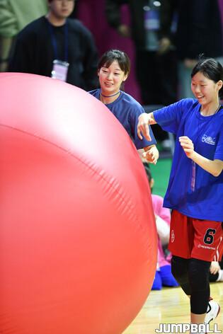 [점프볼=아산/유용우 기자] 06일 아산 이순신체육관에서 열린 2023-2024 WKBL 올스타 페스티벌 ‘W-페스티벌’, WKBL 스타들이 아이들과 함께 명랑운동회를 진행하고 있다.