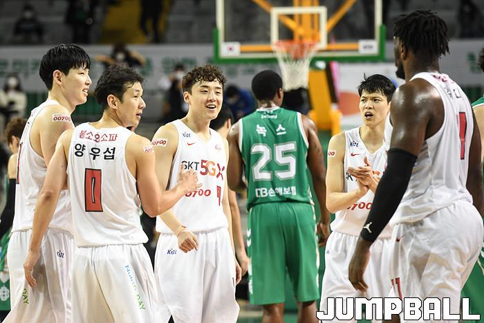 [점프볼=원주/박상혁 기자] 18일 원주종합체육관에서 열린 2020-2021 현대모비스 프로농구 원주 DB와 서울 SK의 경기, SK가 DB에 78-72로 승리하였다.